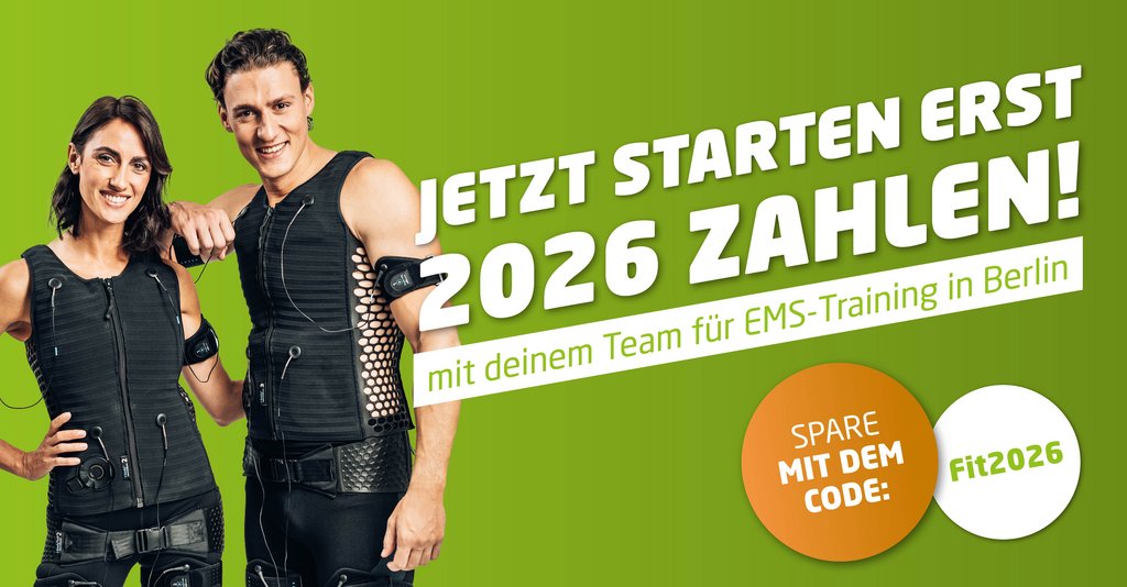 Unsere Aktion für deinen perfekten Fitness-Start: Bis zum Jahreswechsel beitragsfrei trainieren – streng limitiert und maximal gültig bis zum 15.12.2025!* Je früher du startest, desto mehr sparst du: Nenne den Code "Fit2026“ bei deinem ersten Training und starte kostenfrei durch. Nur gültig bei Abschluss einer Mitgliedschaft ab 6 Monaten Laufzeit – streng limitiert auf 10 Mitgliedschaften pro Studio. Nur gültig in den Standorten Berlin Friedrichshain, Bergmannkiez, Moritzplatz, Neukölln, Pankow, Kudamm, Mitte, Kollwitzplatz und JFK-Platz.